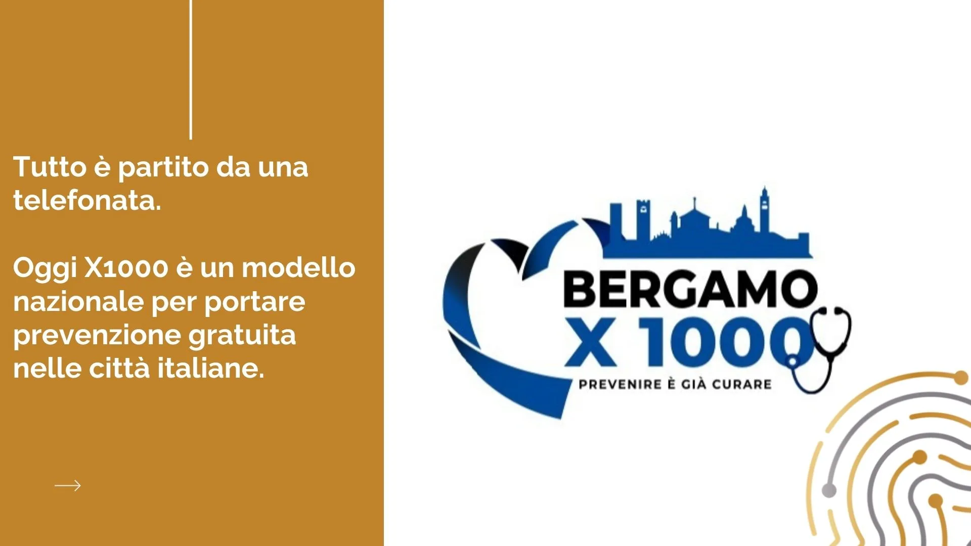 L’iniziativa in questione era BergamoX1000. L’obiettivo era (ed è) semplice e cruciale: organizzare una campagna di fundraising per poter offrire una serie di visite mediche e check-up completamente gratuiti ai cittadini sul territorio di Bergamo. Un’azione concreta per rispondere a un bisogno reale di prevenzione, superando le lungaggini e le barriere economiche del sistema sanitario tradizionale.
