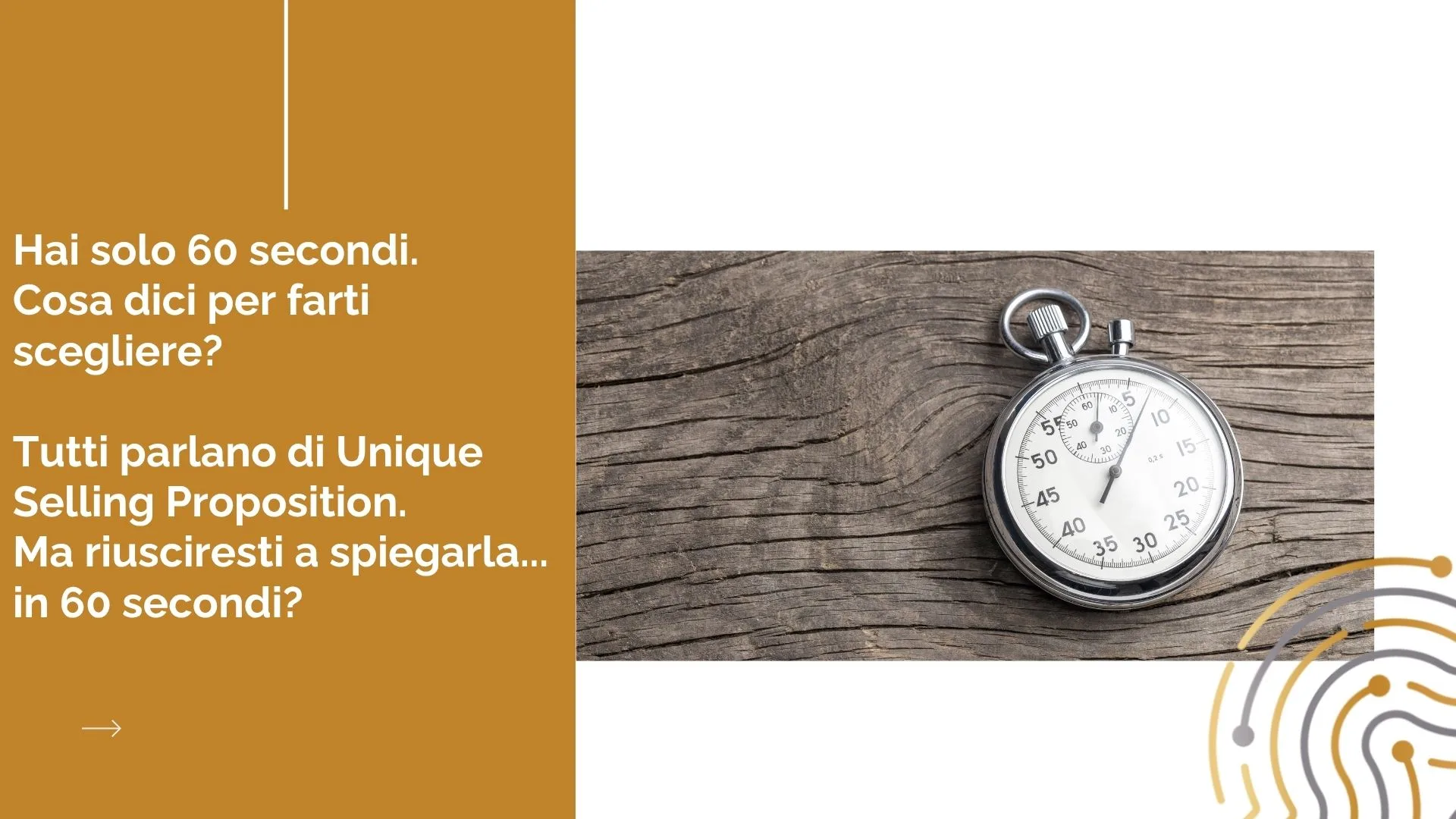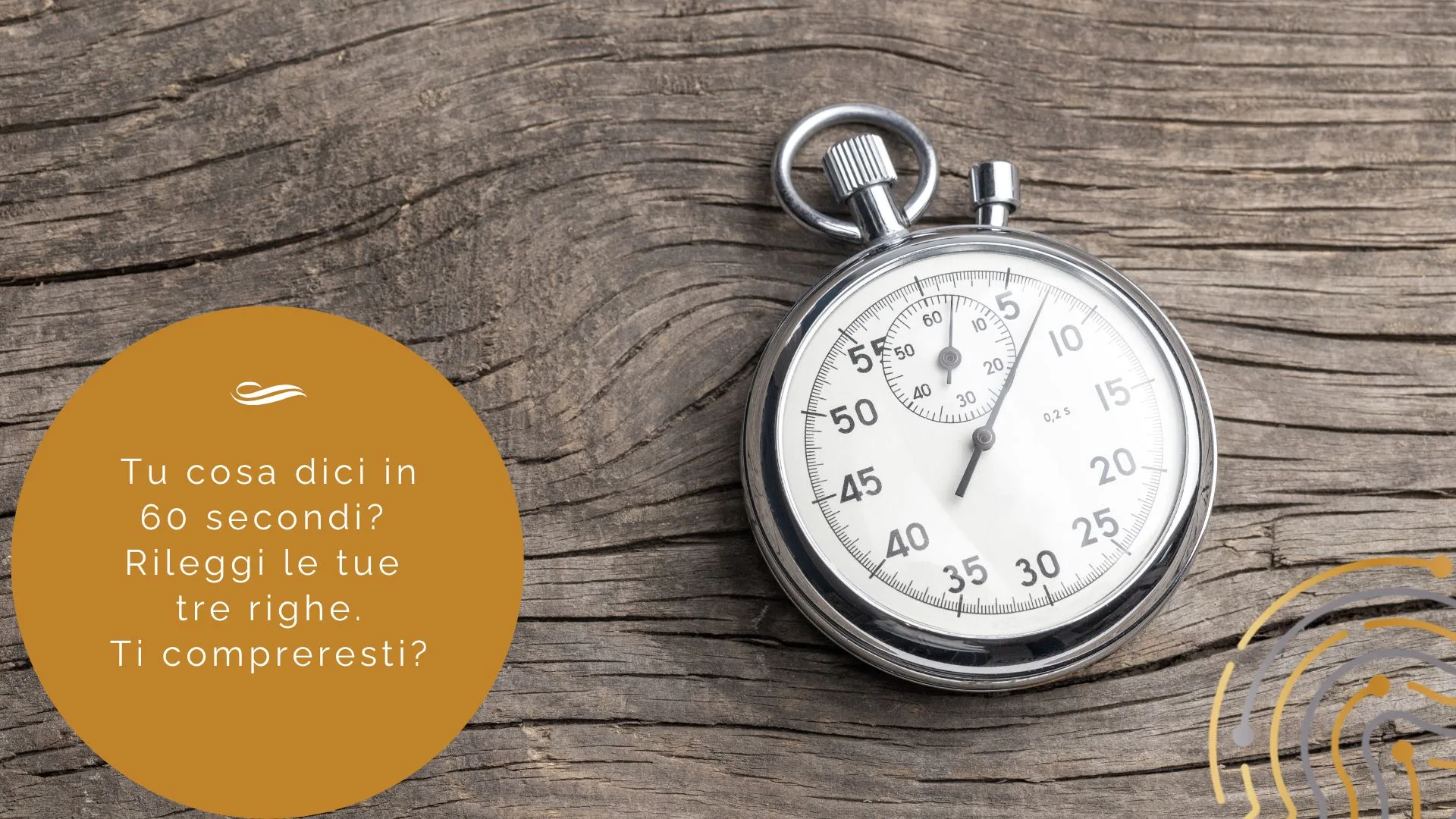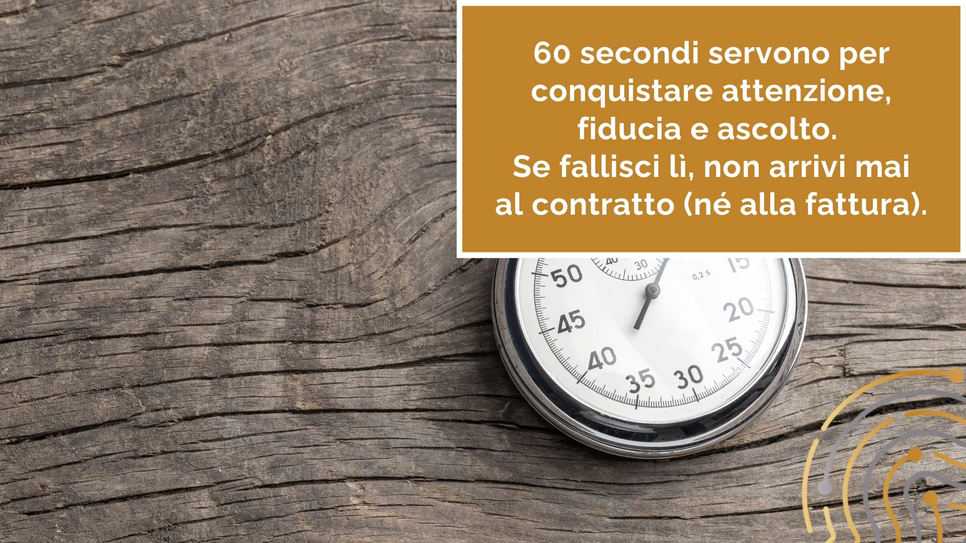 Per questo, da BNI al primo colloquio con un lead, tutti insistono tanto sui famosi 60 secondi. Perché sono uno specchio. Se non sai raccontare in un minuto quello che fai, è molto probabile che il tuo cliente non lo capirà nemmeno in dieci.
