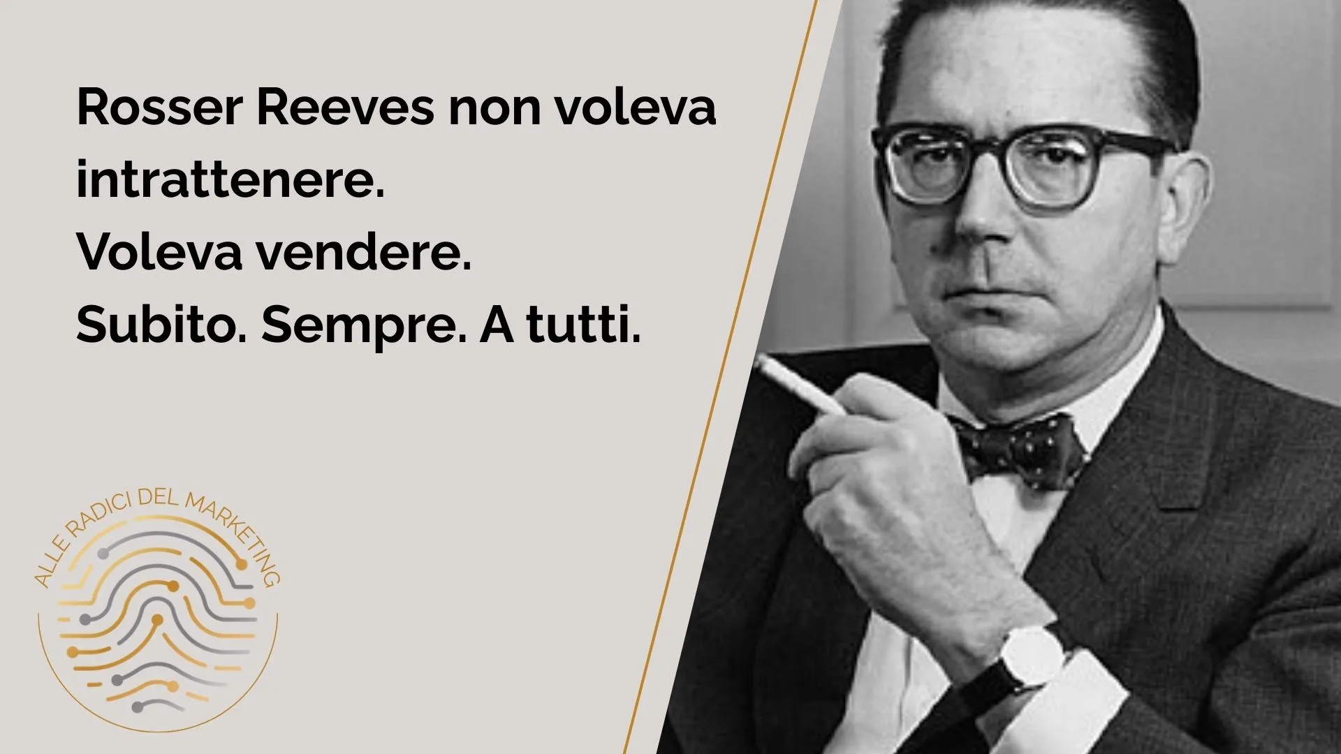 Rosser Reeves ha insegnato a vendere, anche a chi oggi cerca di farlo con emozioni, narrazioni e comunità.