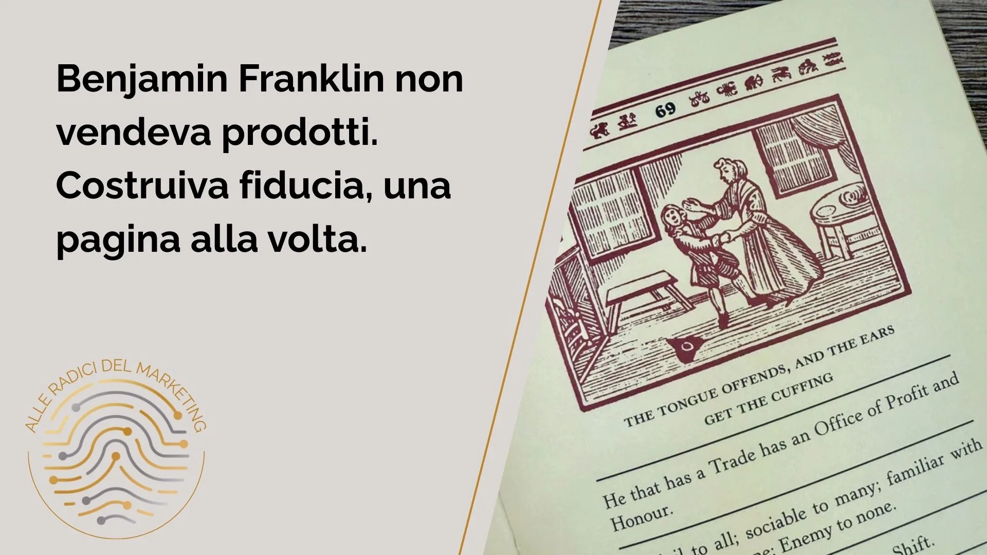 Con le sue stampe, Franklin non si limita a informare: educa, persuade, costruisce fiducia. Capisce che le parole possono cambiare il comportamento delle persone. Che i contenuti — se scritti bene, se coerenti, se autentici — possono diventare strumenti di posizionamento personale, commerciale, culturale.