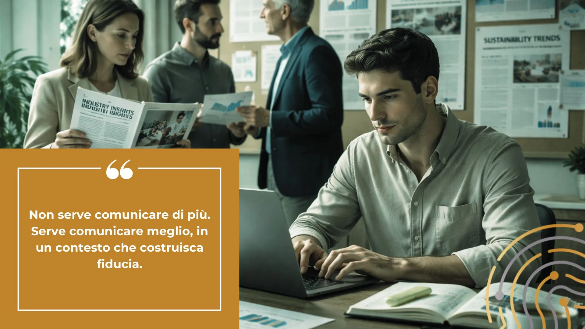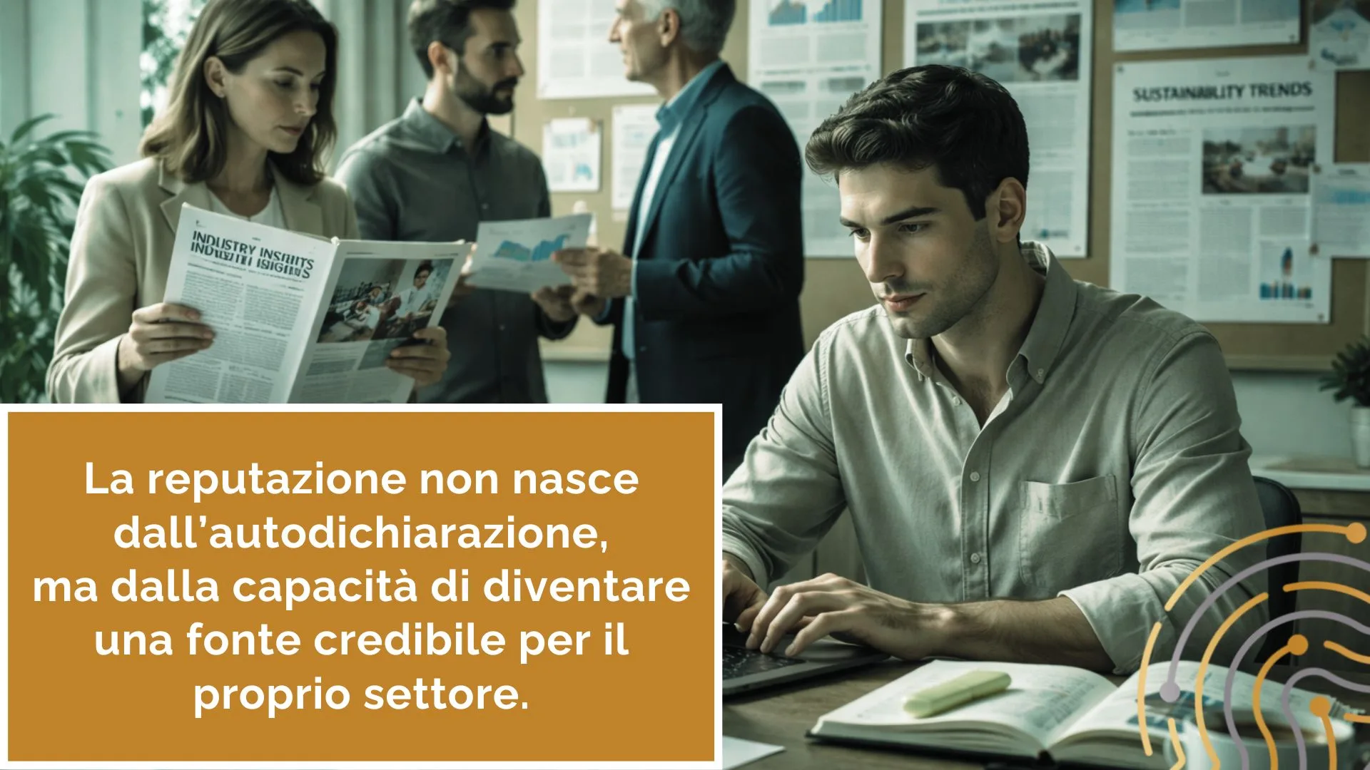 In questo contesto, l’azienda smette di “parlare di sé” e inizia a essere riconosciuta come parte di un racconto più ampio e più utile. La credibilità nasce proprio da questo spostamento. Non dall’autodichiarazione, ma dalla capacità di offrire contesto.