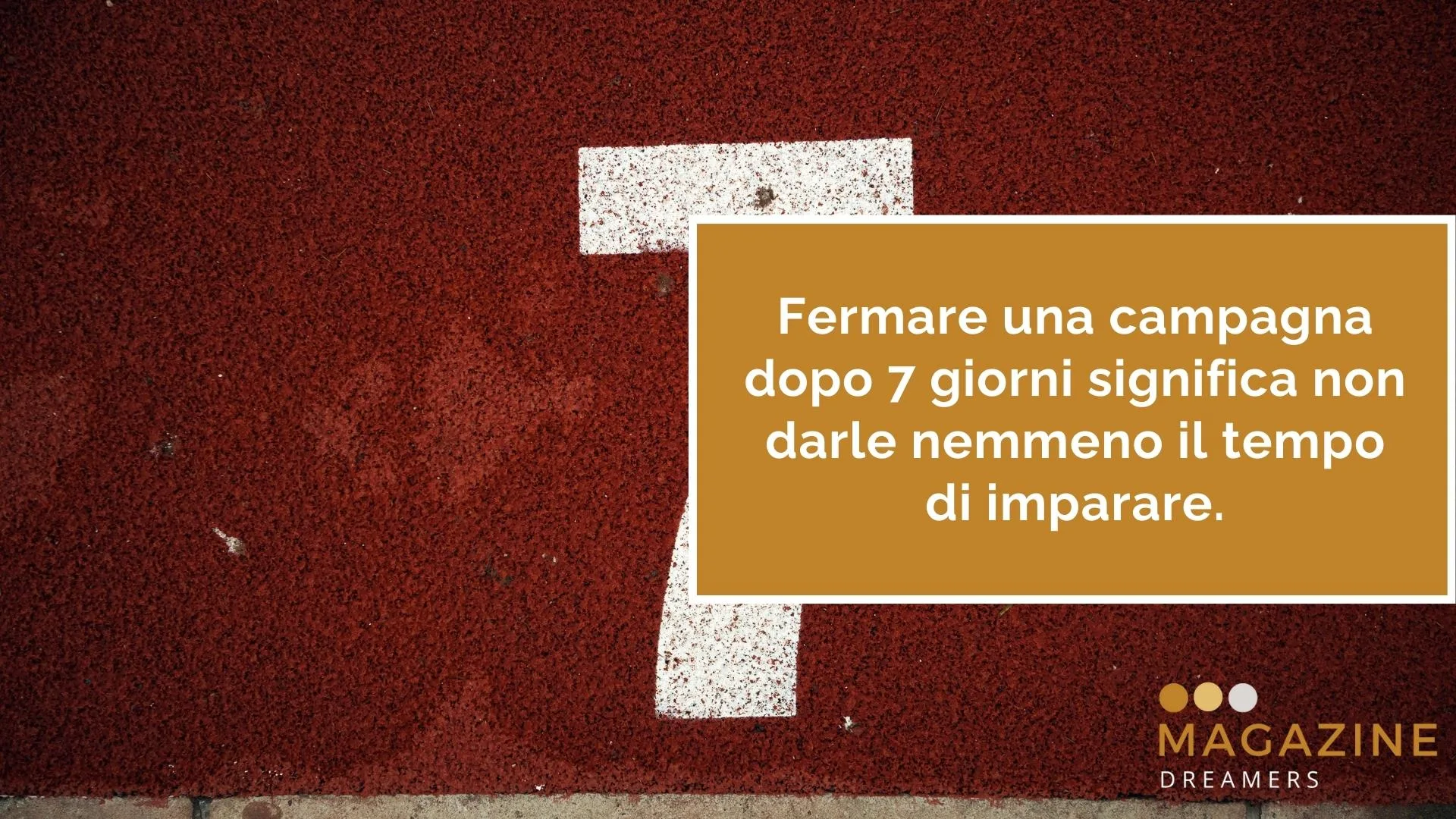 Una campagna interrotta dopo una settimana, magari perché “non arrivano risultati”, è una campagna che non ha avuto nemmeno il tempo di sbagliare, figurarsi di migliorare.